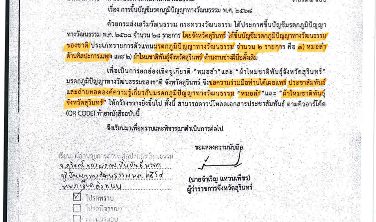 กิจกรรมข่าวประชาสัมพันธ์ กุมภาพันธ์ 25, 2026 admin แจ้งผลการขึ้นบัญชีมรดกภูมิปัญญาทางวัฒนธรรม พ.ศ. 2568 ด้วยกรมส่งเสริมวัฒนธ Read More